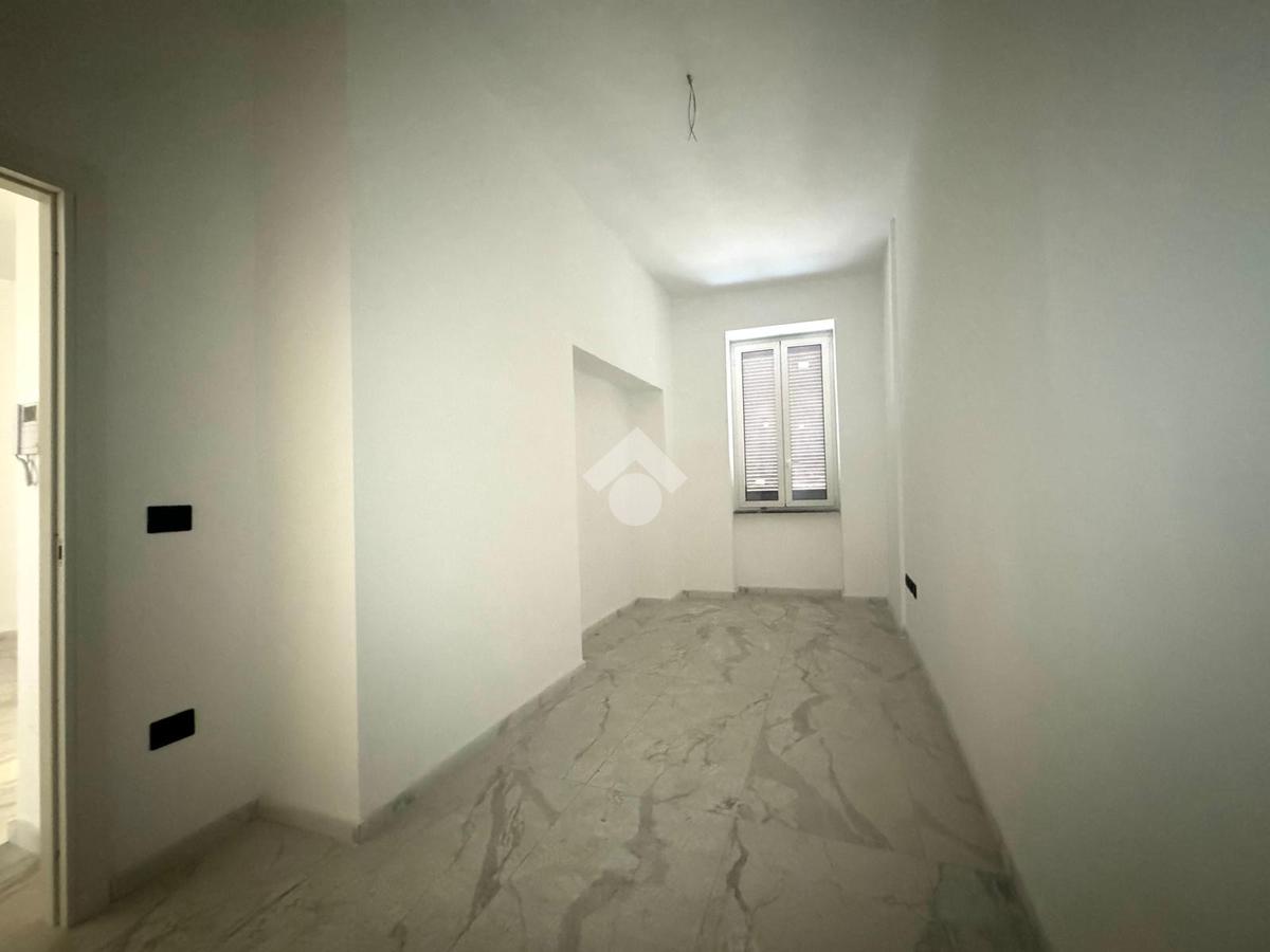 L'appartamento è composto da ingresso in terrazzo di esclusiva proprietà, un ampio soggiorno-cucina con uscita sul balcone, camera da letto con finestra, cameretta con finestra, ed infine, un bagno fornito di sanitari.
