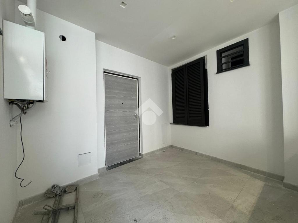 L'appartamento è composto da ingresso in terrazzo di esclusiva proprietà, un ampio soggiorno-cucina con uscita sul balcone, camera da letto con finestra e bagno con piatto doccia, cameretta con finestra, ed infine, un ulteriore bagno fornito di sanitari.